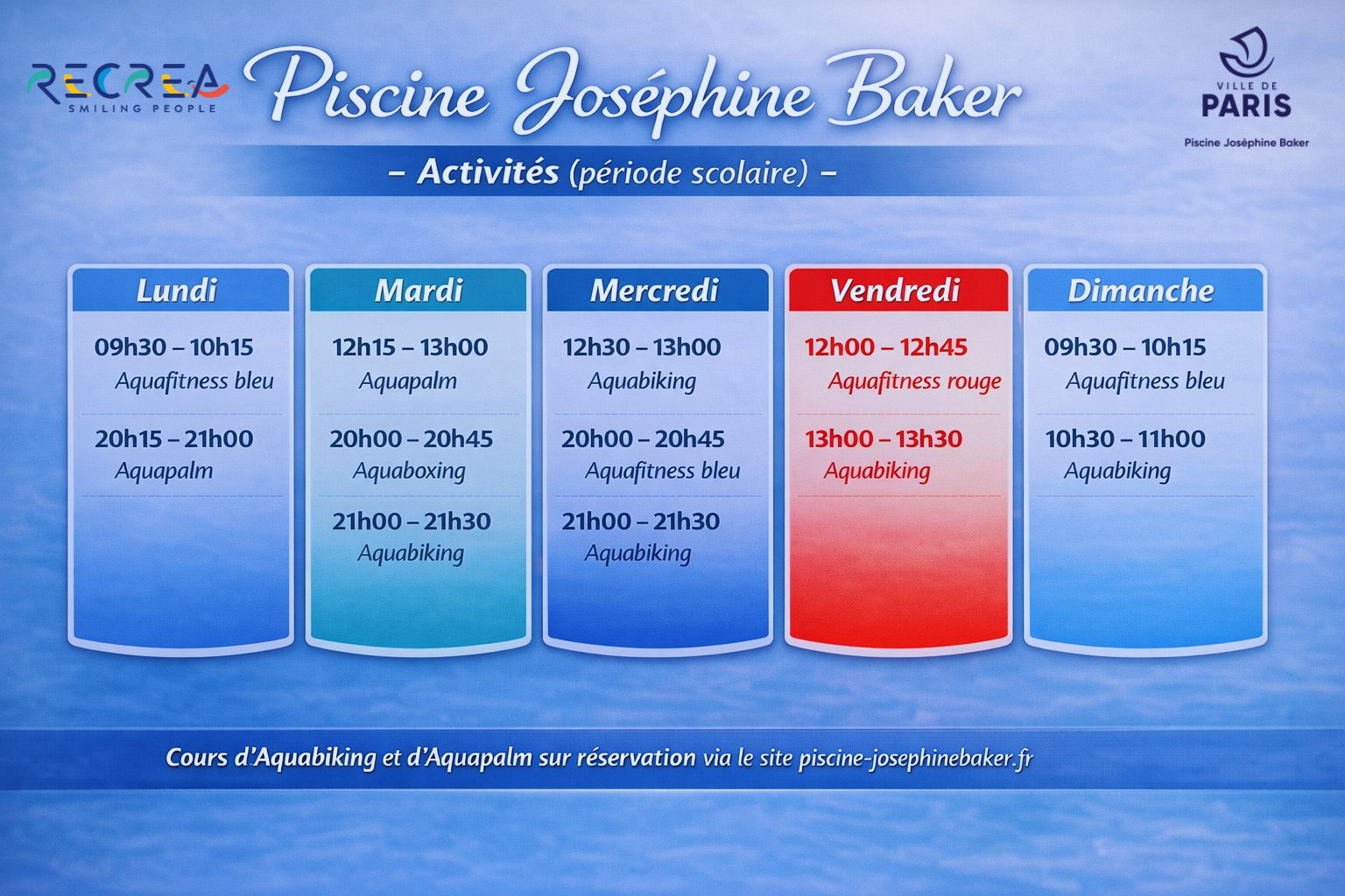 Au centre de la capitale, maintenant, la piscine Suzanne Berlioux n’attend que vous pour des moments de sport, de fun et de détente en amoureux, en famille ou entre amis. Vous aimerez le bassin olympique dans lequel vous pourrez apprendre et pratiquer la natation et tester des aquasports.